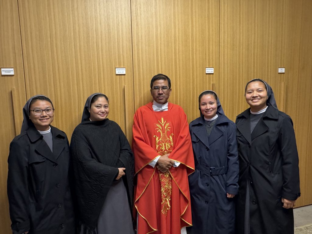 Kirche St. Martin in Bamberg: Sakristei: Pfr. Manbha Pakem und vier VSDB-Schwestern